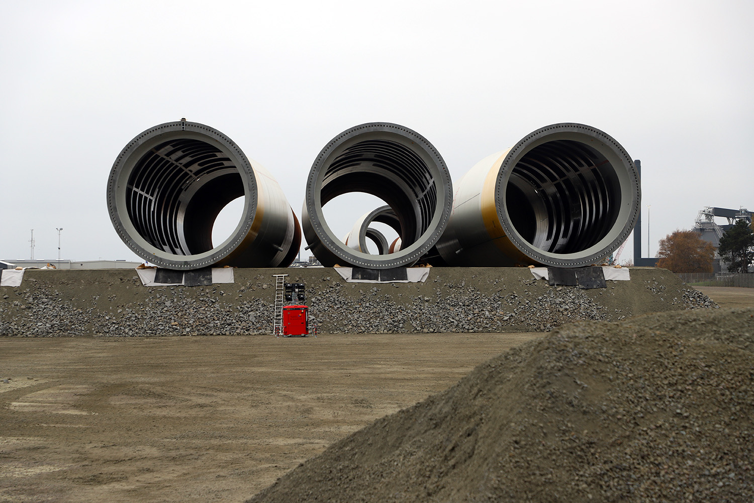 Base of windturbines waiting to be installed offshore of Bornholm, Denmark.